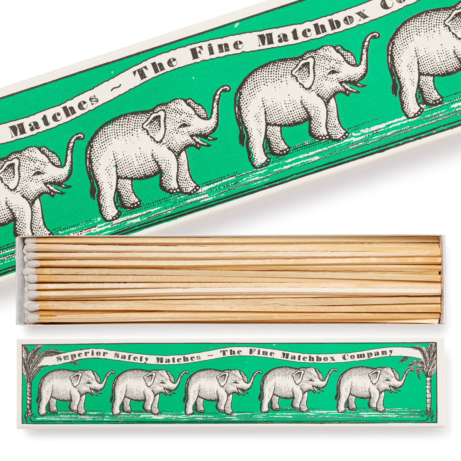 Our stylish long match boxes are practical and fabulous all at the same time. Containing our extra long match sticks, they make lighting fires and storm lanterns a breeze! The gorgeous Green Elephants design makes us feel a little nostalgic for our favourite scene in The Jungle Book - perfect to add some unmistakable Archivist charn to your fireplace.